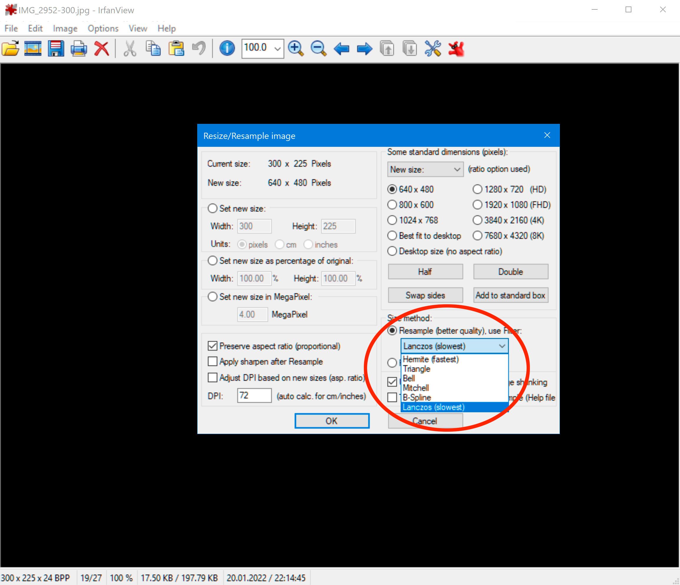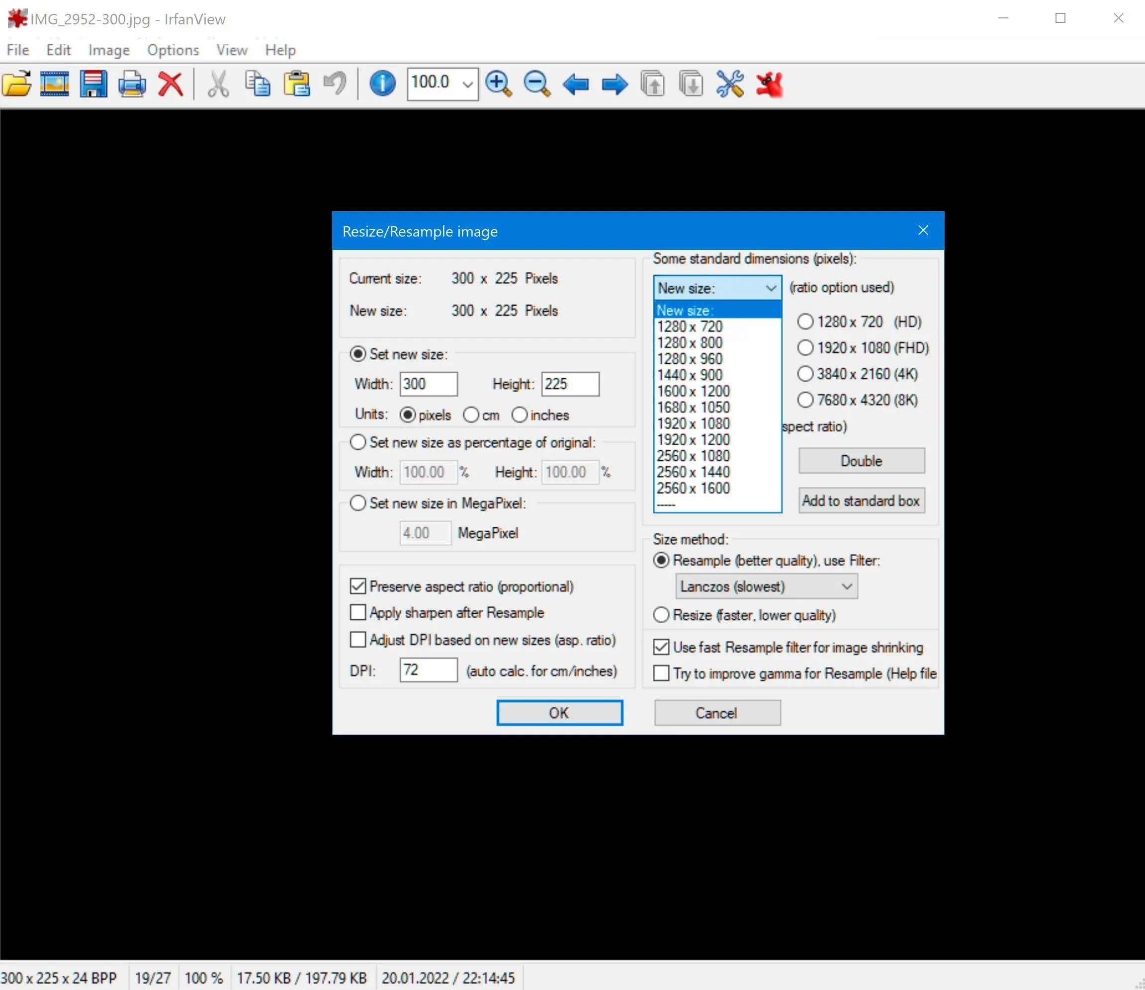 Disponible pour Windows, IrfanView requiert un abonnement nominal si vous l'utilisez à des fins commerciales.Comme GIMP, IrfanView propose également une option de redimensionnement fractal ! Voici comment l'utiliser :